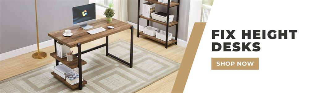 This modern desk features adjustable shelving that can be positioned on either side, offering flexible storage. With a sleek wood finish and durable metal frame, it blends contemporary style with lasting strength. Perfect for home offices or study spaces, it efficiently utilizes space while keeping your essentials organized.