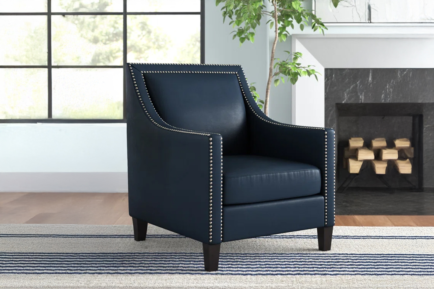 Transform your space with the elegant and comfortable ABBEY Arm Chair, designed to elevate any room effortlessly. Upholstered in NAVBLUE PU leather with stylish button accents and nailhead trim, it adds sophistication to your décor. Built with a durable eucalyptus wood frame, sturdy rubberwood legs, and high-density foam cushioning, this chair offers lasting support and unmatched comfort.