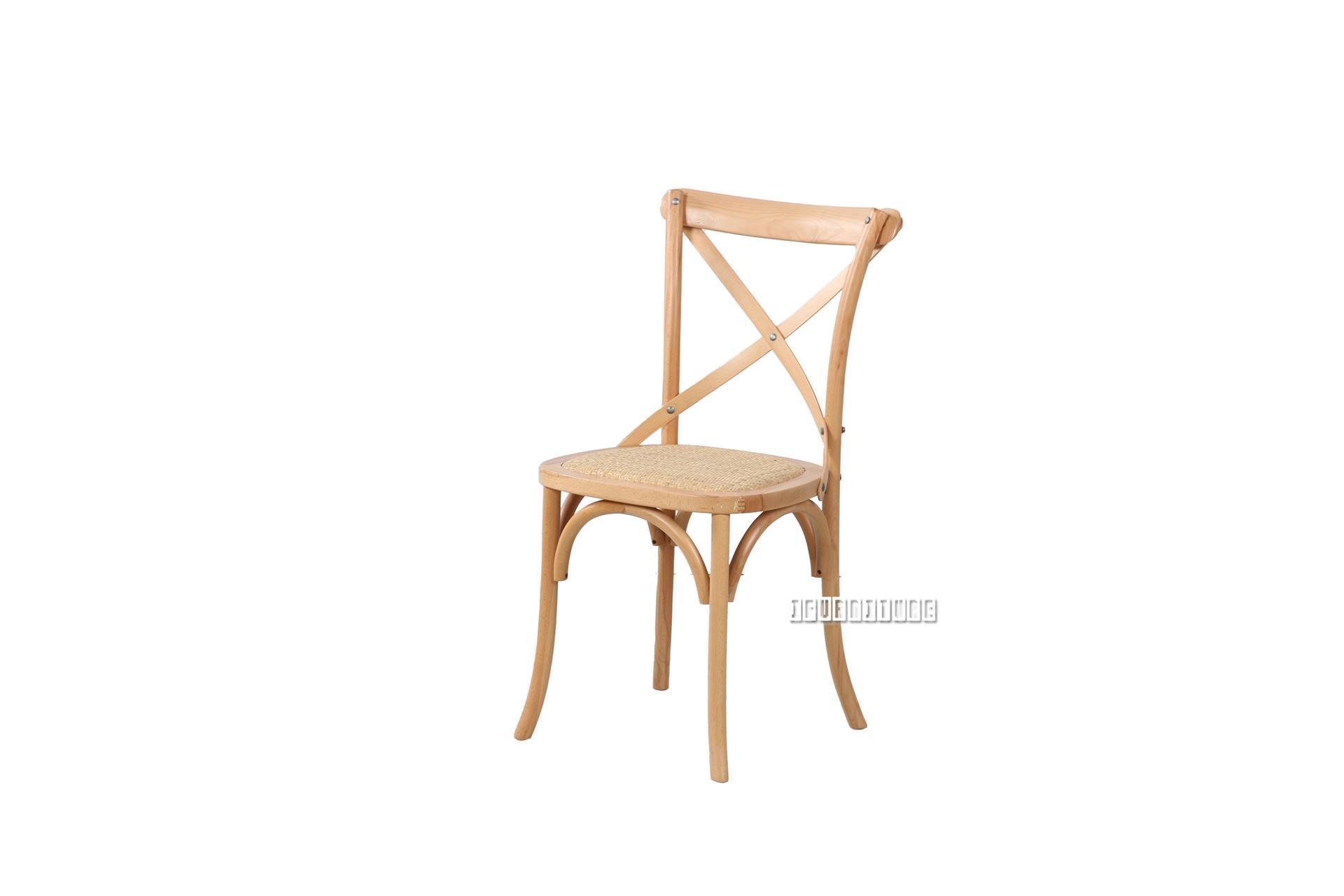 - Natural stained wood, with rattan seat -cross back chair