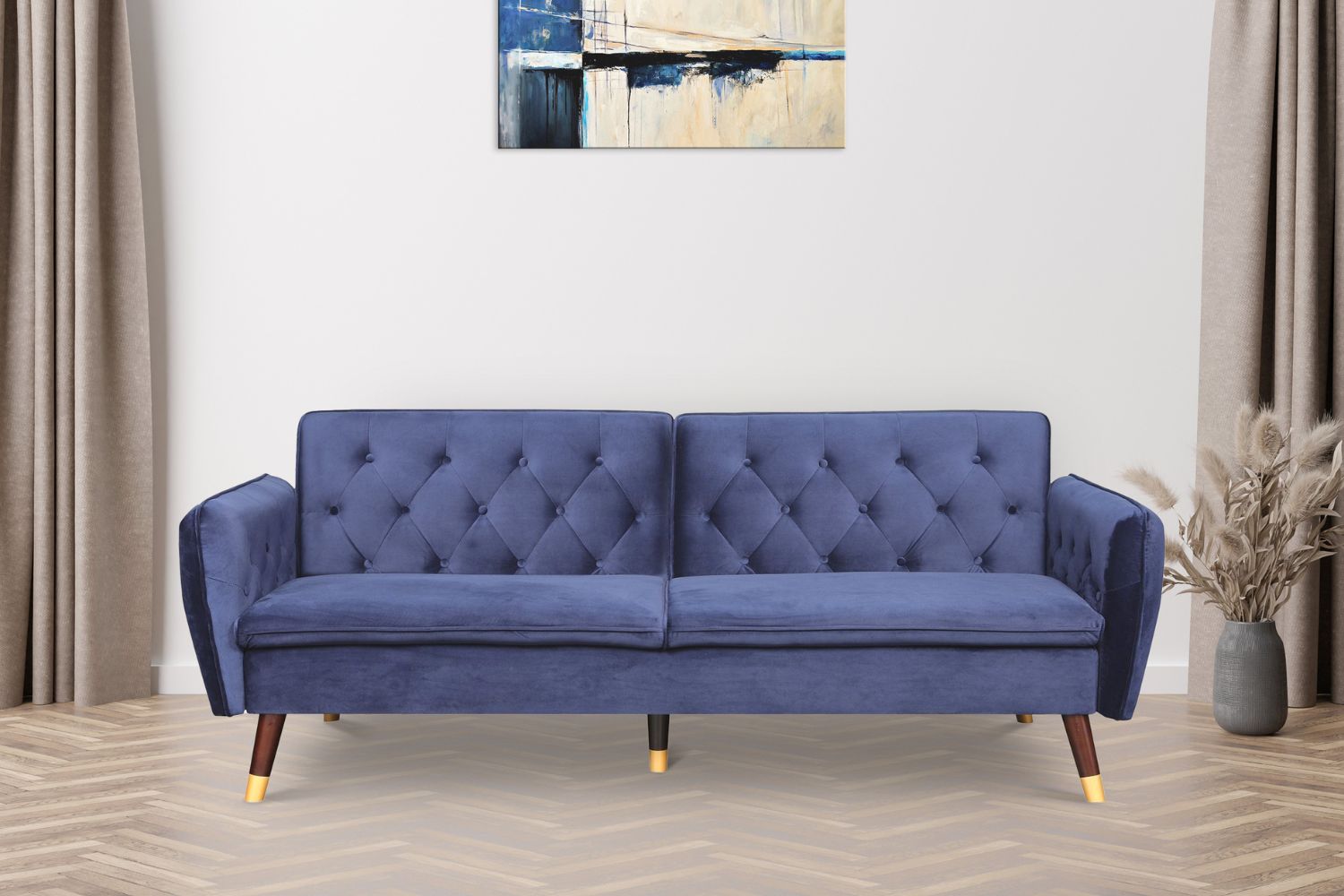 ARTHUR 3 Seater Velvet Sofa Bed (Blue)