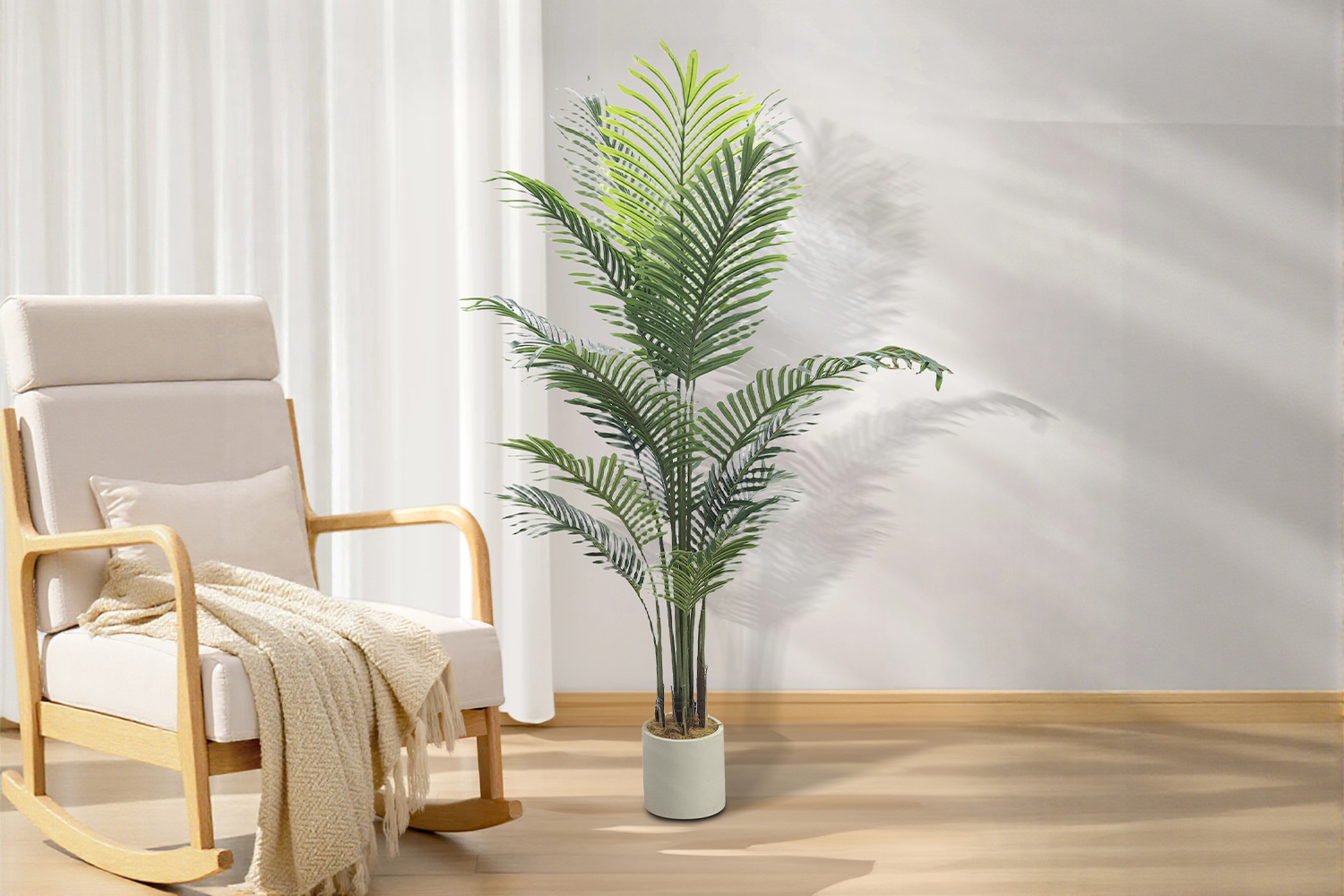 Transform your space into a lush tropical retreat with the Artificial Potted Areca Palm Plant, available in 120cm, 150cm, and 180cm heights. With its dense arching fronds, realistic textures, and soft natural green tones, this lifelike palm brings fresh energy to any interior setting, without the need for water, sunlight, or trimming. Each palm leaf mimics real plant growth, with varied shapes, subtle colour, and fine detailing that make it nearly indistinguishable from a live plant. Whether placed in a living room, office, entryway, or balcony, this elegant artificial tree is a perfect year-round décor piece.