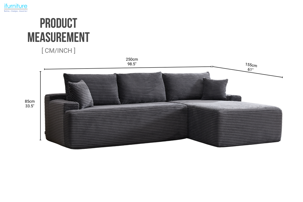 The DEVON sectional combines generous seating, clever storage, and a clean, modern look in one space-saving design. Upholstered in soft grey fabric, this L-shaped sofa features deep, supportive cushions and multiple hidden storage compartments built into the backrests, plus a lift-top storage ottoman. Perfect for apartments or busy family living rooms, it keeps blankets, toys, and essentials neatly out of sight while providing a cosy spot to relax, lounge, or entertain.