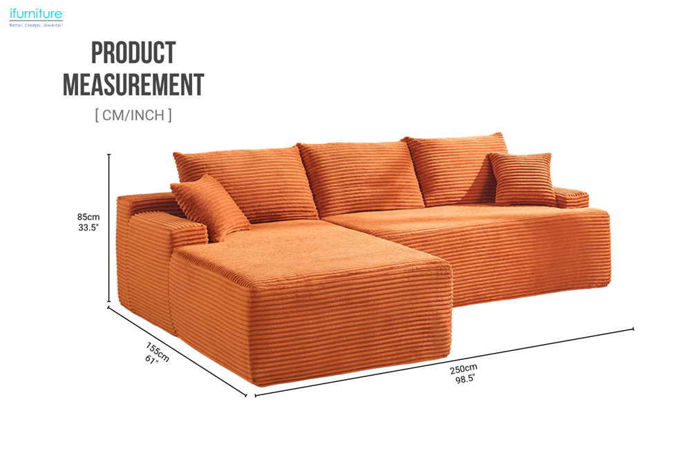 ASHFORD Fabric Sectional Compressed Sofa (Orange)