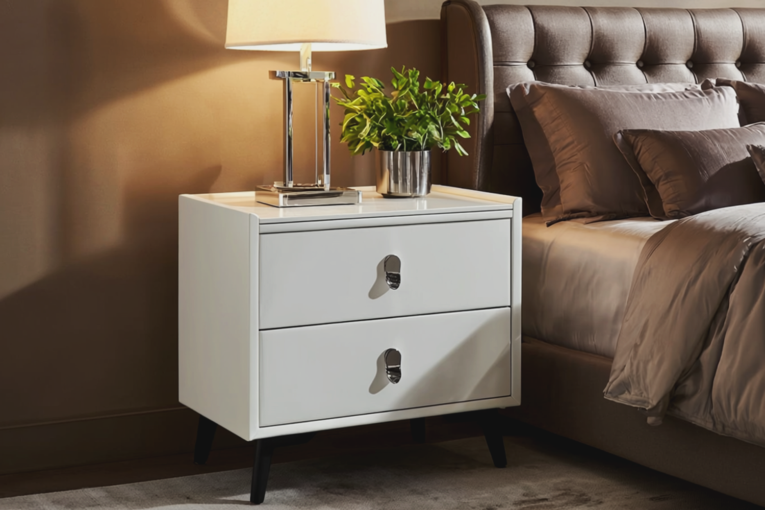 Elevate your bedroom with the AUGUSTA 2-Drawer Bedside Table, blending modern elegance with practical functionality. Its sleek light grey design and sophisticated sintered stone top not only enhance your room's aesthetics but also ensure durability against daily wear and tear. With ample storage space and easy access to essentials, this bedside table offers both convenience and style, making it a perfect choice to organize and beautify your bedroom effortlessly.