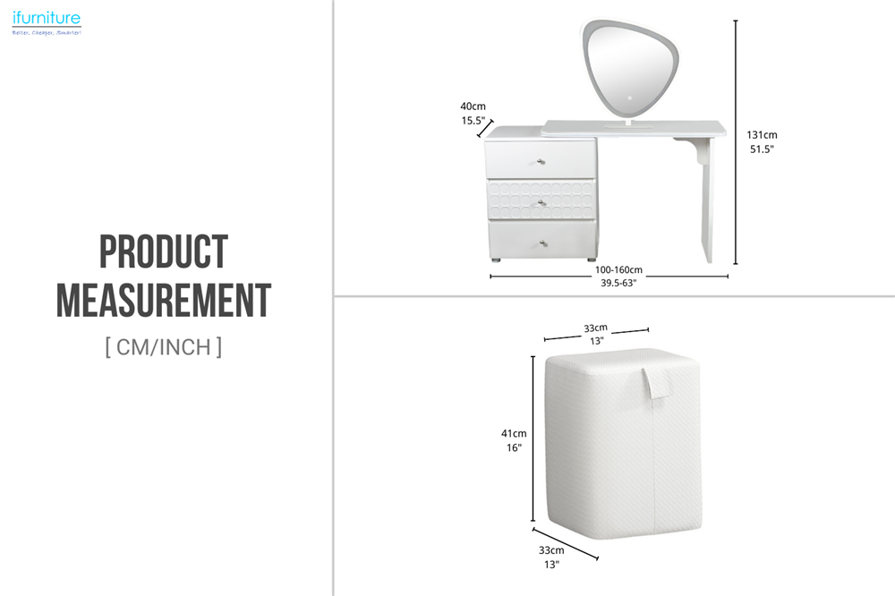 - 3 LED Lighting Modes: The mirror features a touch-control LED light with three adjustable lighting modes, illuminating both the mirror and the desk edge for a coordinated, ambient glow.