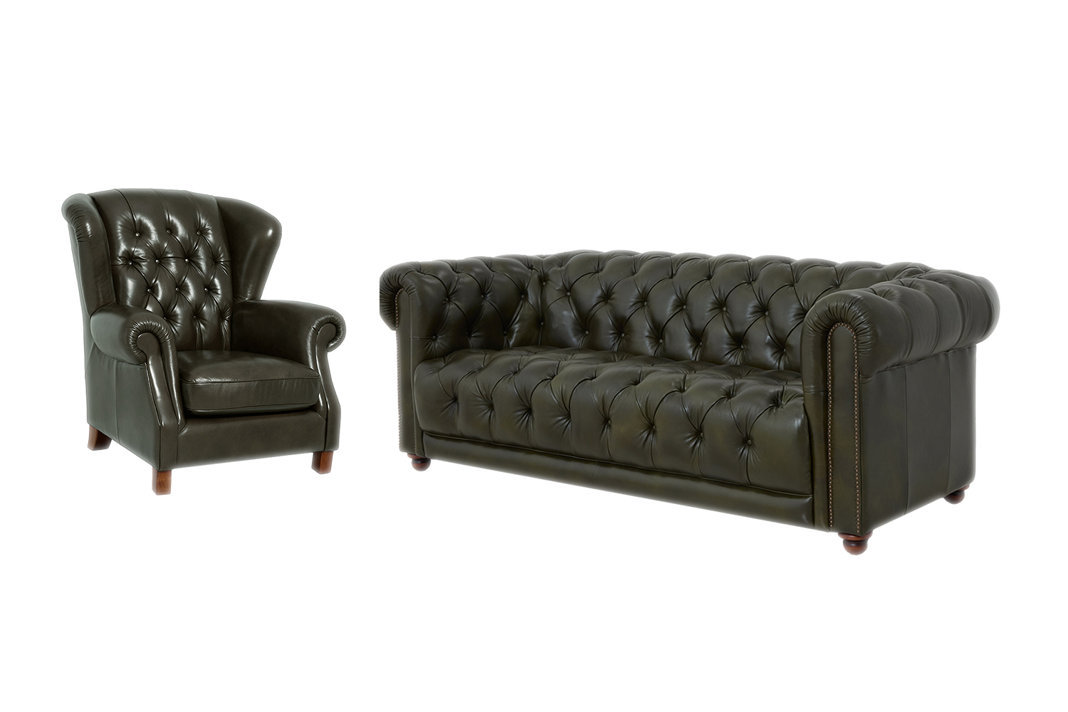 BAMBURGH 100% Genuine Leather Chesterfield Sofa Range - 1 Seater