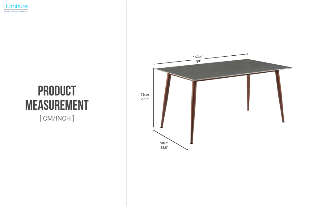 This dining table features a sleek sintered stone tabletop paired with strong metal legs in a natural wood-grain finish, delivering a perfect balance of modern style, durability, and everyday practicality.