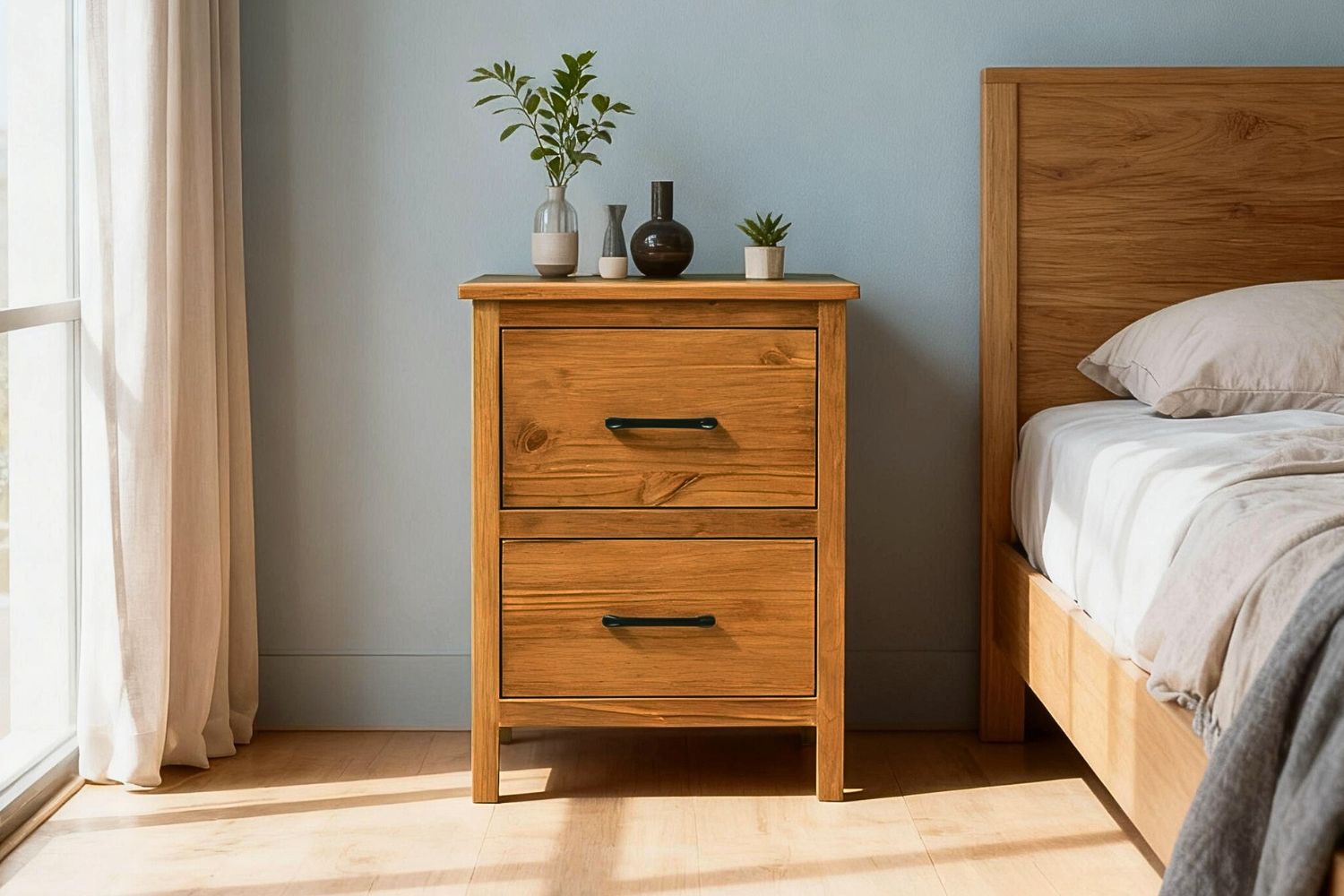 BAYARD 2-Drawer Solid Pine Wood Bedside Table