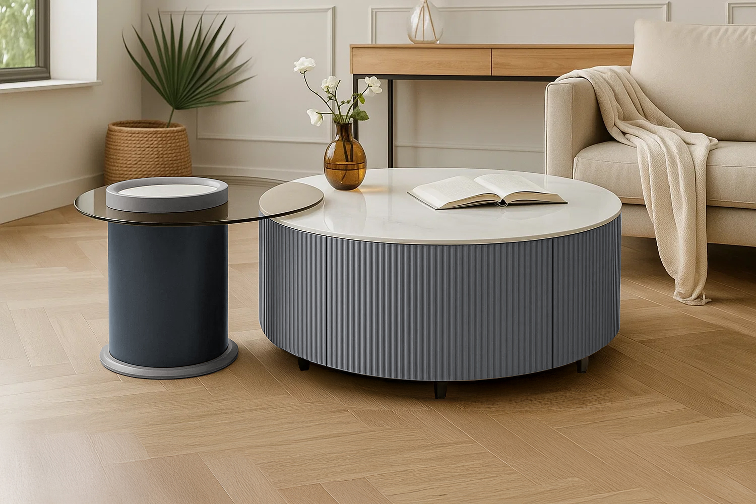 Bivio Round Nesting Coffee Table with Drawer