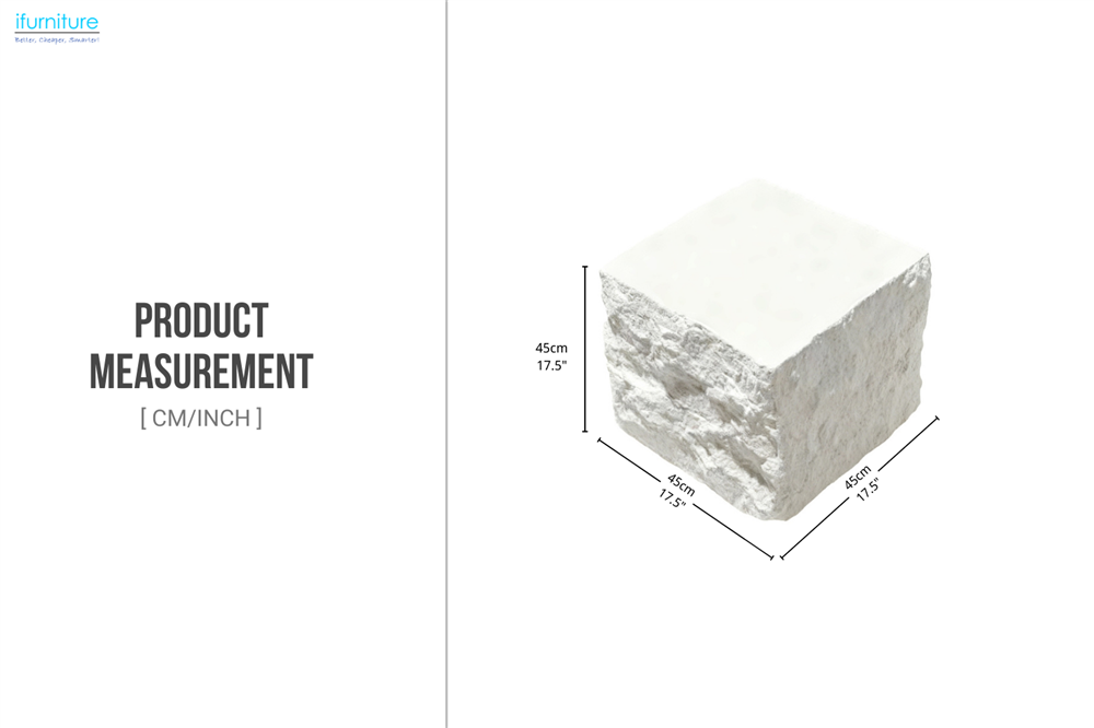 Crafted from sturdy yet lightweight FRP(Fibreglass Reinforced Plastic), this side table blends everyday functionality with artistic appeal. The chiselled, stone-like texture along the sides adds sculptural charm, while the smooth, flat top provides a practical surface for décor and daily items. Its modern, minimalist cube design makes it a striking addition to any contemporary living space.