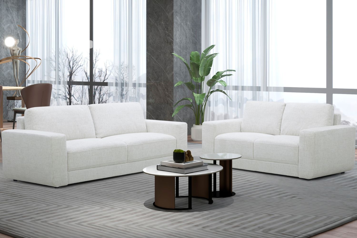 The Cortona Sofa boasts a sleek, modern design with soft white upholstery and clean lines. Its padded cushions and firm armrests provide excellent comfort, while the durable, textured fabric ensures longevity. The sturdy frame and versatile design make it a perfect fit for various décor styles, adding elegance and practicality to any space.