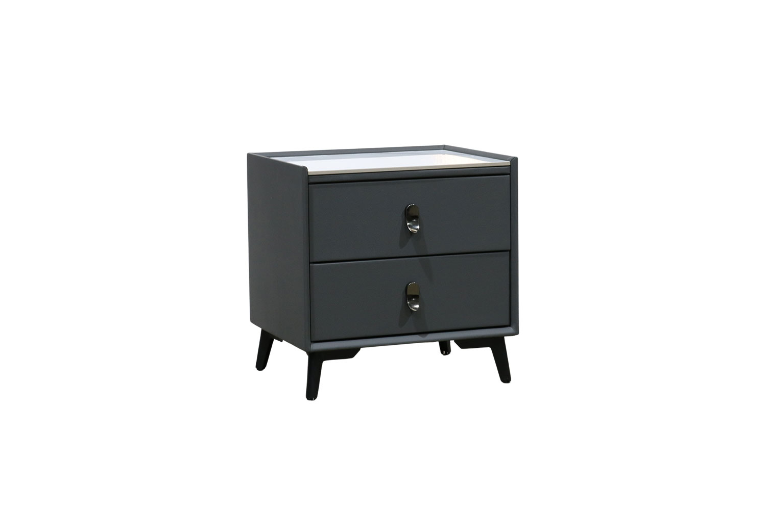 The CUBA 2-Drawer Bedside Table in Dark Grey offers a sleek and contemporary design, enhanced by a sophisticated sintered stone top with a refined slate finish. Built with high-quality materials, including leather, engineered wood, and metal hardware, this table ensures long-lasting durability while providing ample storage space with its two spacious drawers. Its versatile placement options and functional organization make it a perfect addition to any bedroom layout, seamlessly combining style and practicality.