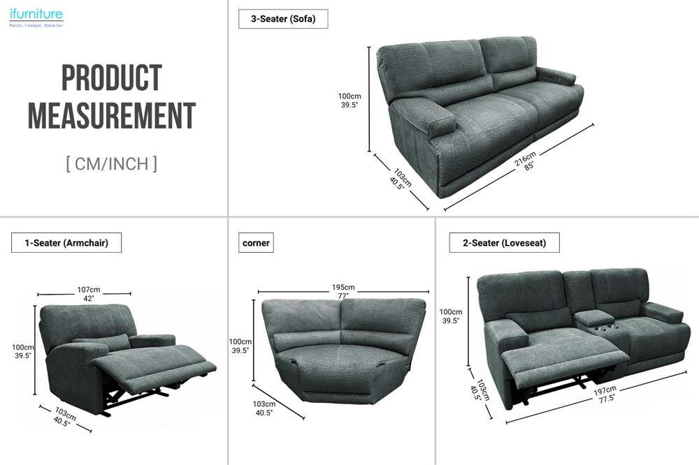 • Corner Section: Adds extra seating and enhances the sectional layout, providing a cosy and spacious corner for lounging without reclining functionality.