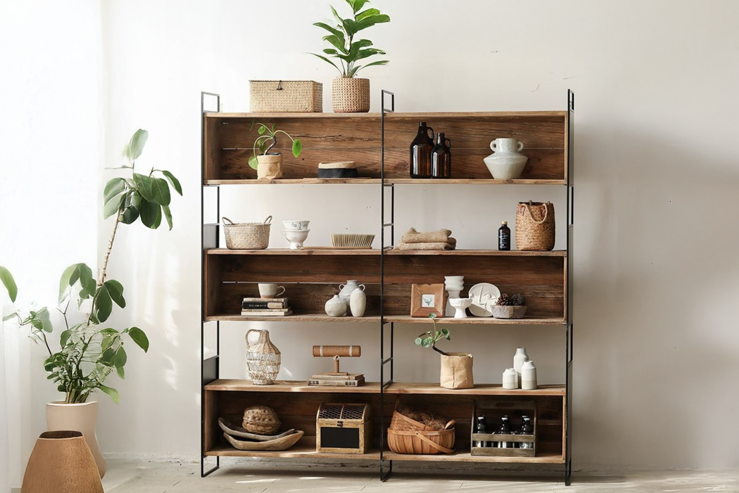 - Sturdy construction featuring reclaimed pine wood and robust iron.