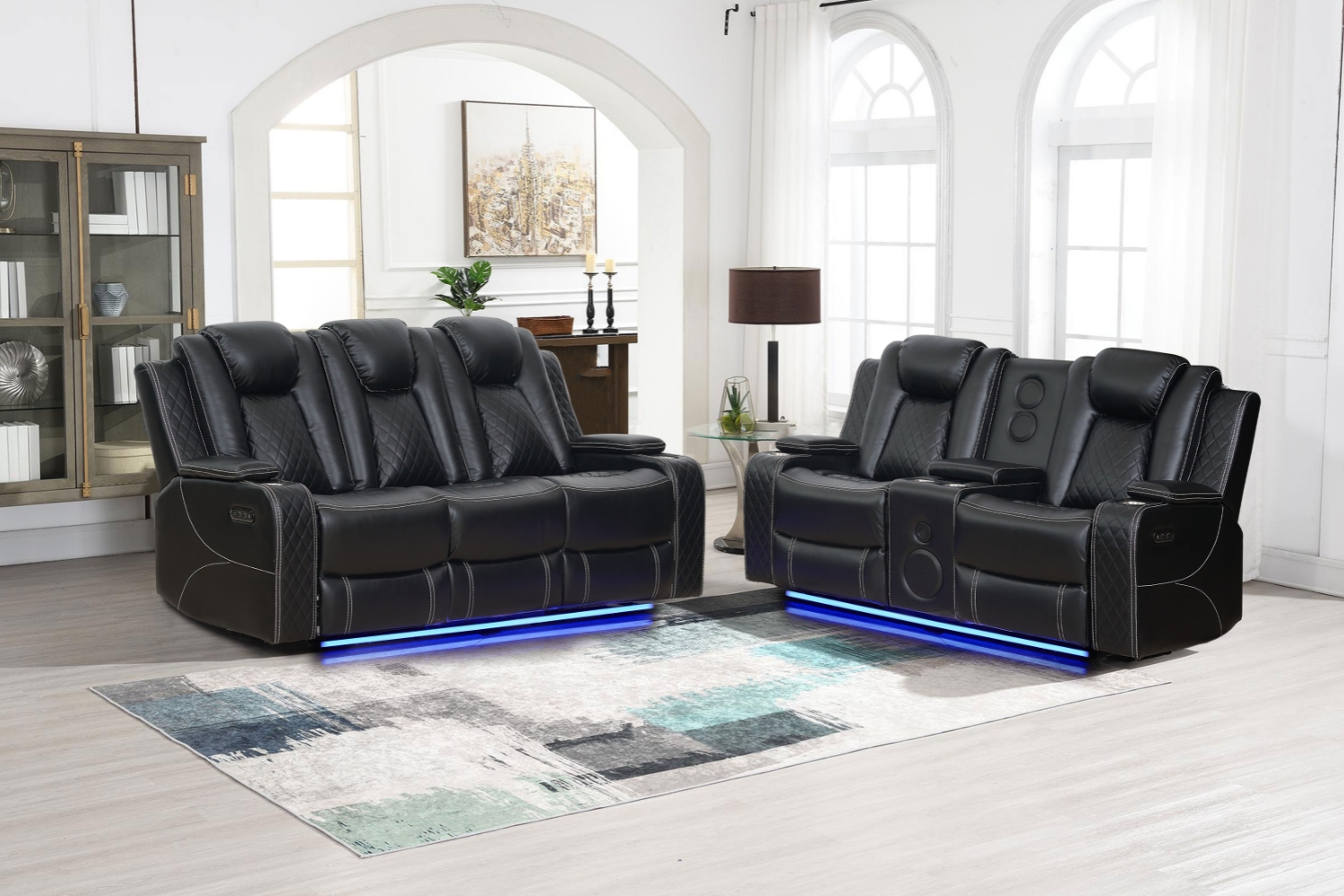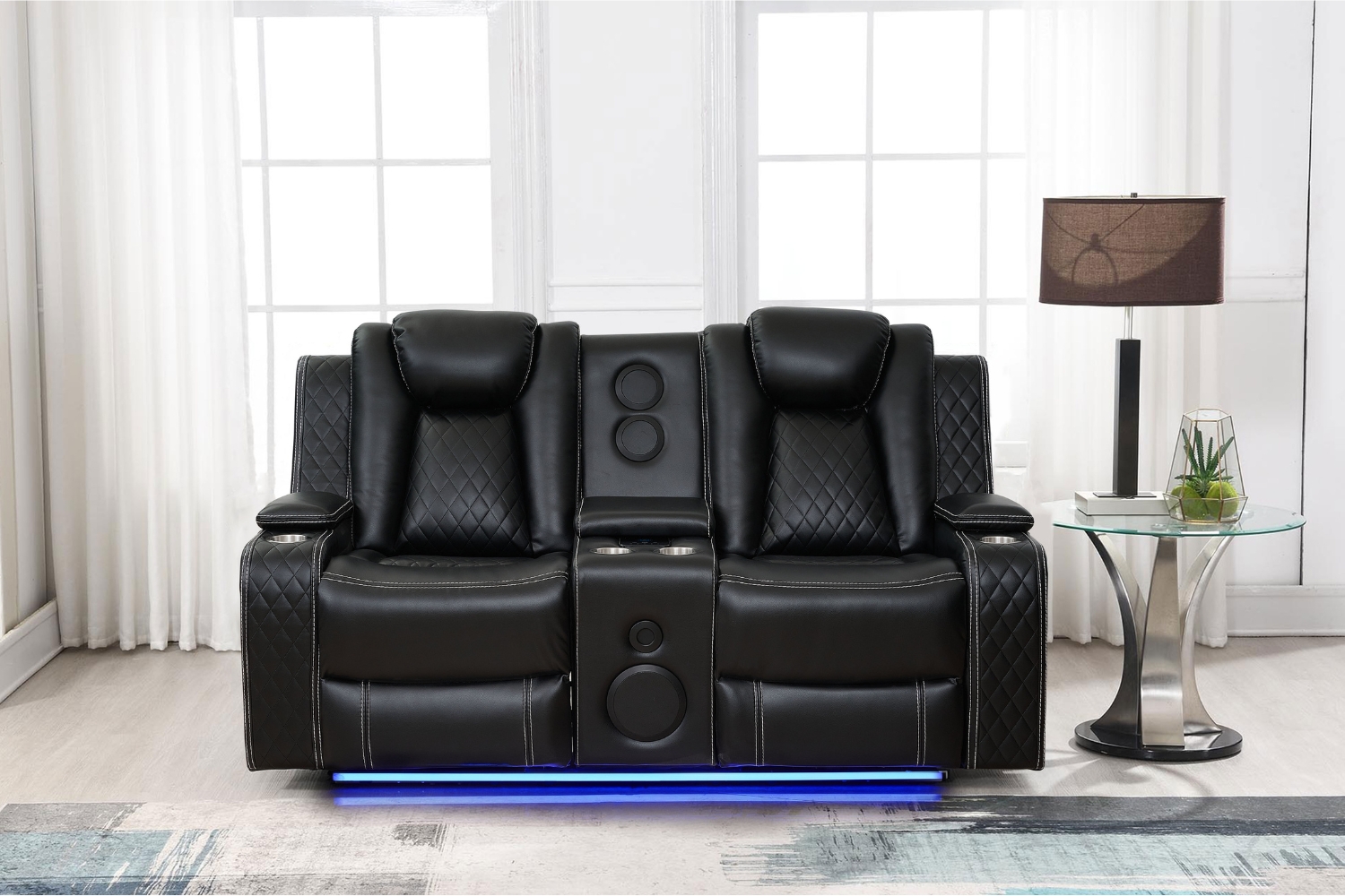 • LED Lighting: Sleek, integrated LED lights beneath the seats provide a modern, stylish glow that enhances the ambiance, creating a soothing and relaxing atmosphere for any room.