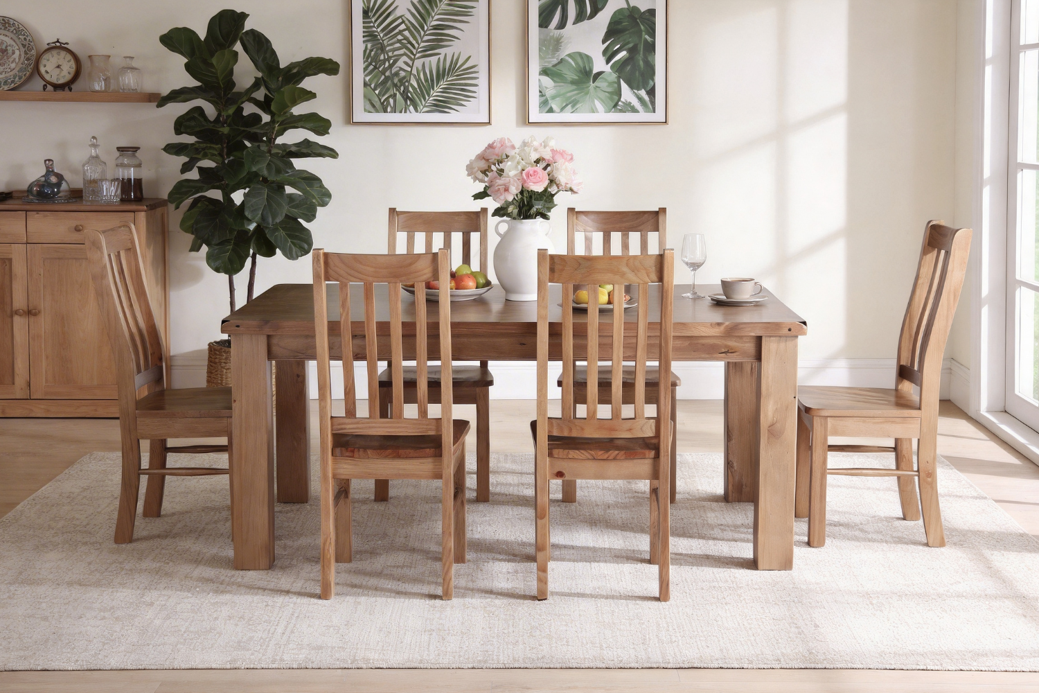 The FRANCO NZ pine dining set comes with 2 options: 1.8m Table + 6 Chairs or 2m Table + 8 Chairs. FRANCO Solid Pine dining table in natural color, Classical design, solid, strong and comfy. Available in 2 sizes: 1.8m or 2.1m. Pair it with the other items from ifurniture's FRANCO collection for a most inviting feel.