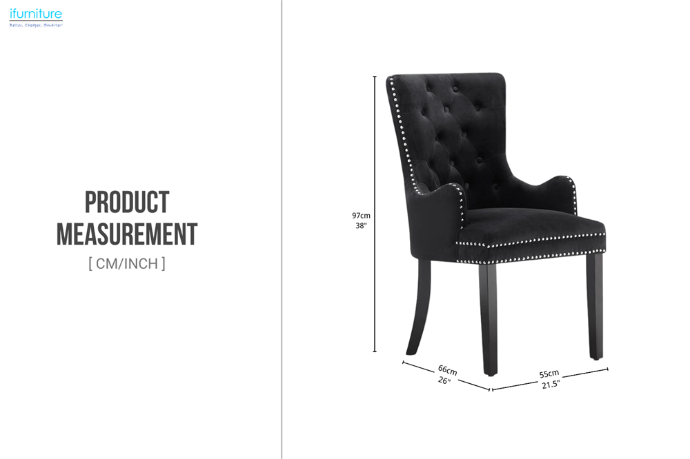 This elegant dining chair features refined tufting, nailhead detailing, and a decorative back ring for a sophisticated look. Soft upholstery and high-density cushioning offer exceptional comfort, while the supportive arms and sturdy wooden legs create a timeless piece perfect for both formal and everyday dining spaces.