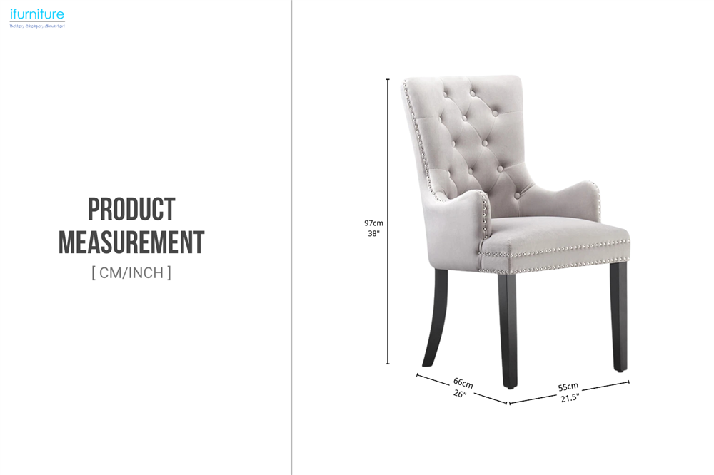 This elegant dining chair features refined tufting, nailhead detailing, and a decorative back ring for a sophisticated look. Soft upholstery and high-density cushioning offer exceptional comfort, while the supportive arms and sturdy wooden legs create a timeless piece perfect for both formal and everyday dining spaces.