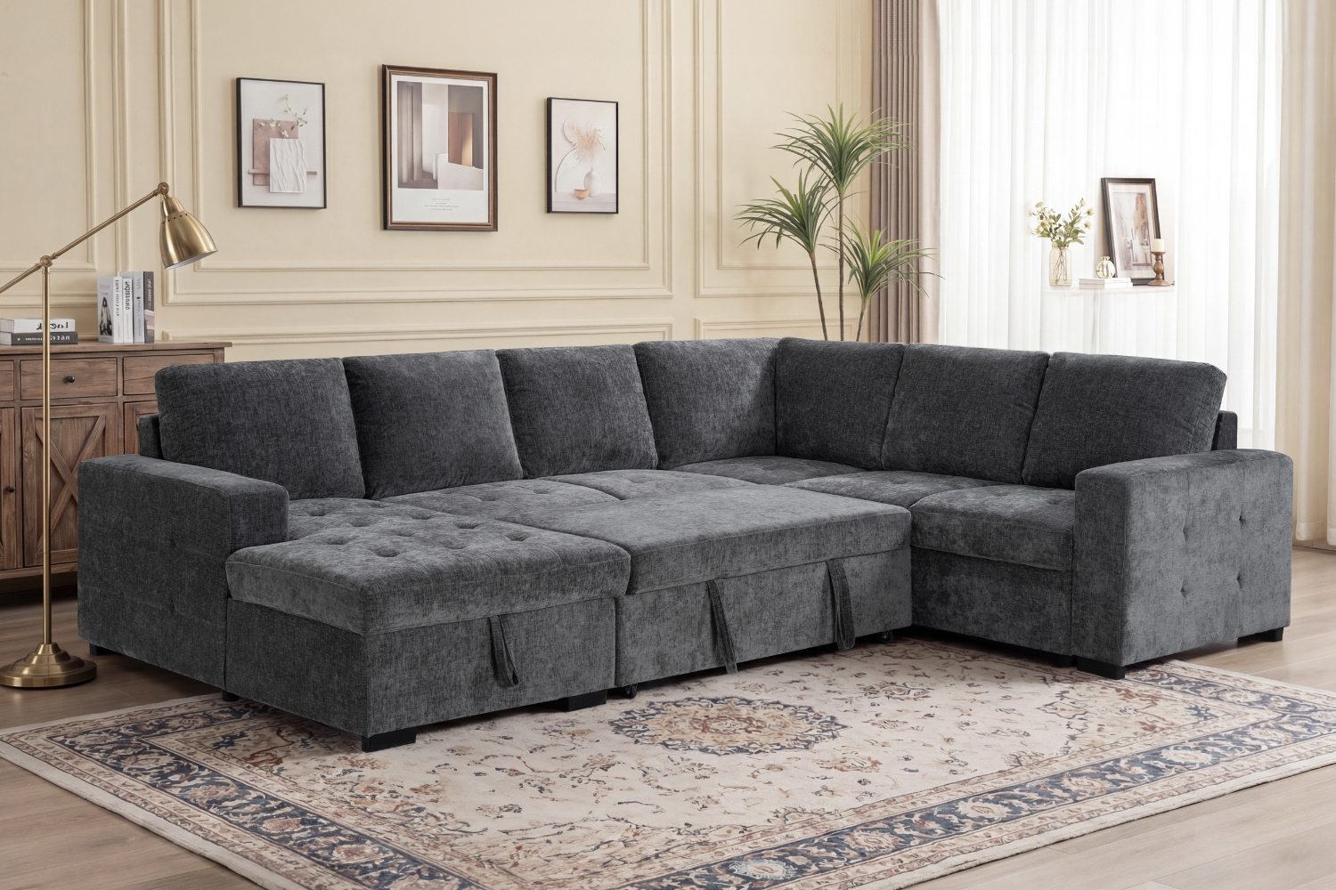 HENRIK U-Shape Tufted Sectional Sofa/Pull-Out Sofa Bed with Storage