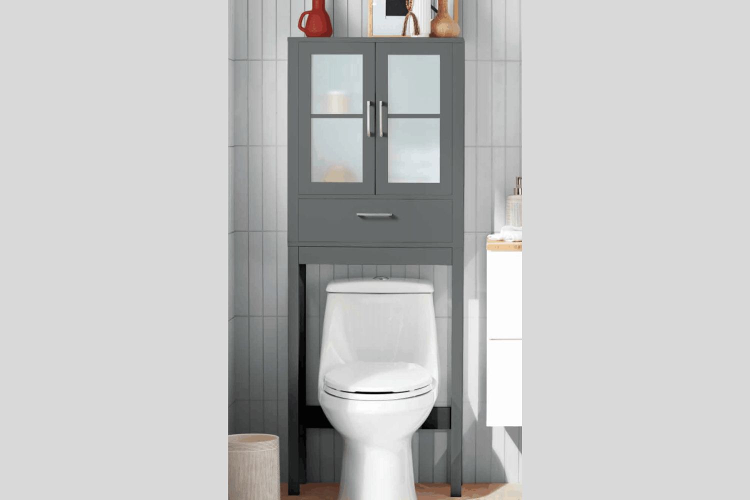 Maximize your bathroom storage without using up floor space with our efficient over-the-toilet storage rack. The HUDSON 60 Bathroom Space Saver in Grey is a blend of style and functionality, made from durable MDF and adorned with an attractive NC painting or paper finish. The substantial 1.5cm thickness in its top panel, door frame, and suction surface ensures durability. The elegant frosted glass doors with metal handles add a touch of sophistication while providing practical privacy. Inside, a spacious storage area with a shelf and drawer allows you to organize your bathroom essentials efficiently. This space saver is both practical and chic, enhancing the functionality and aesthetics of your bathroom.