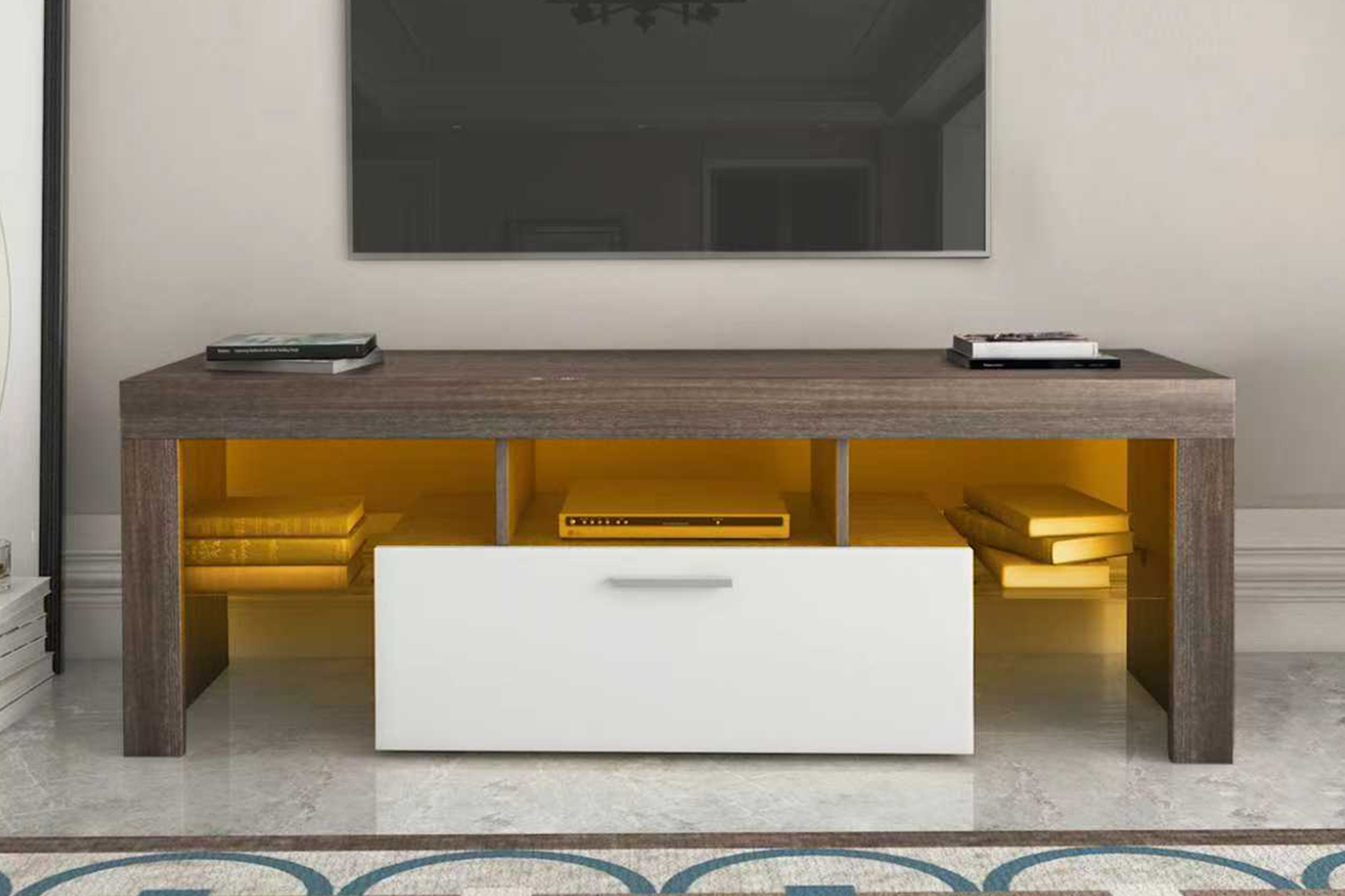 Sleek Design: The contemporary design of this TV unit integrates easily with modern interior styles, adding elegance to your space without overwhelming it.