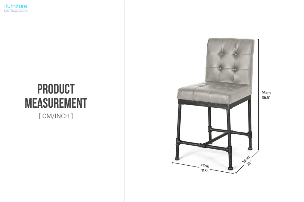 The LENTO Bar Chair combines modern industrial style with ultimate comfort. Upholstered in premium vegan leather, the seat is foam-padded for a plush feel. The sturdy metal legs provide both strength and a contemporary aesthetic, perfect for bar areas, kitchen islands, or home dining spaces. The sleek design, complemented by tufted detailing on the seat and backrest for any modern home.