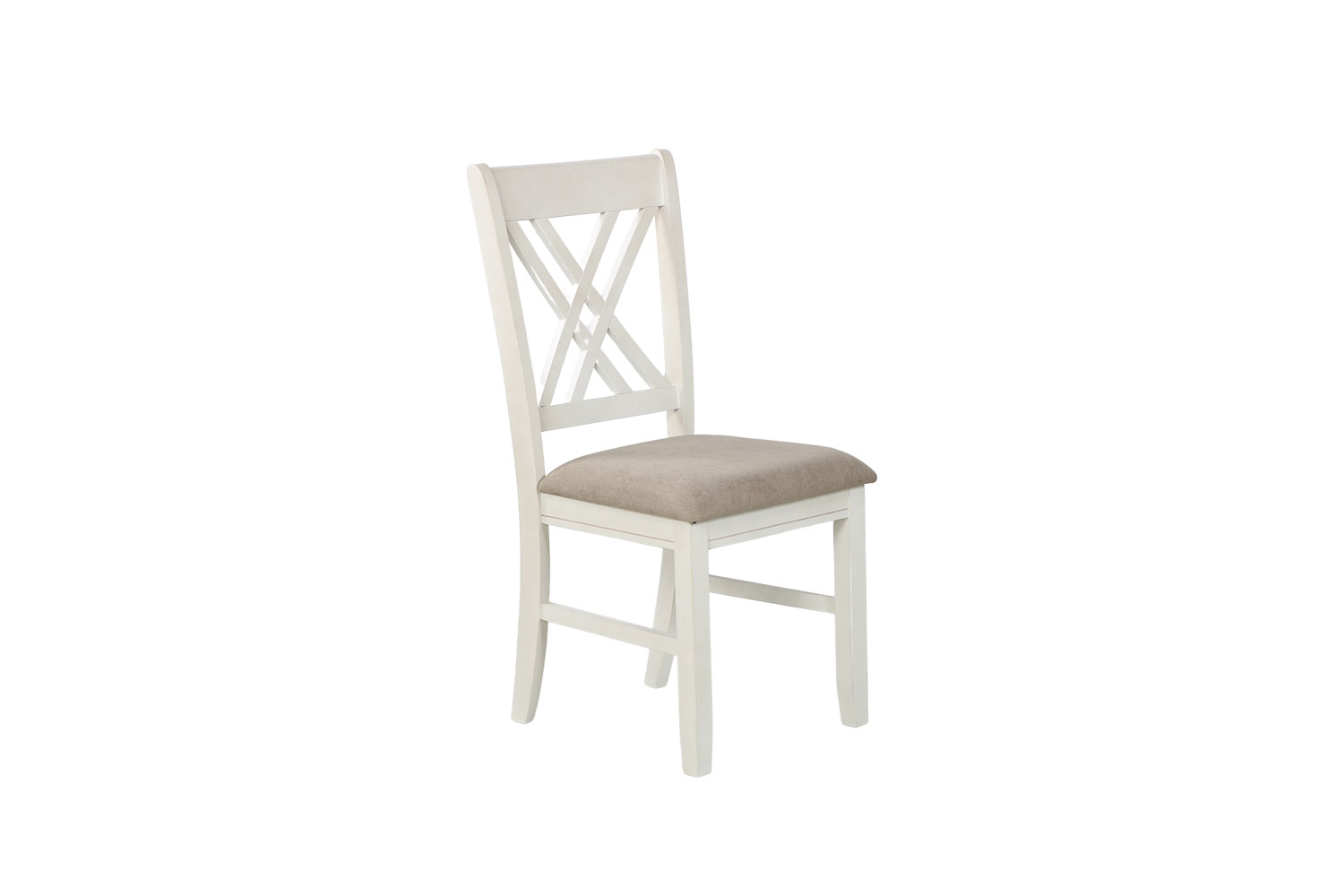 White, solid wood, x backrest, padded seat – timeless elegance and comfort.