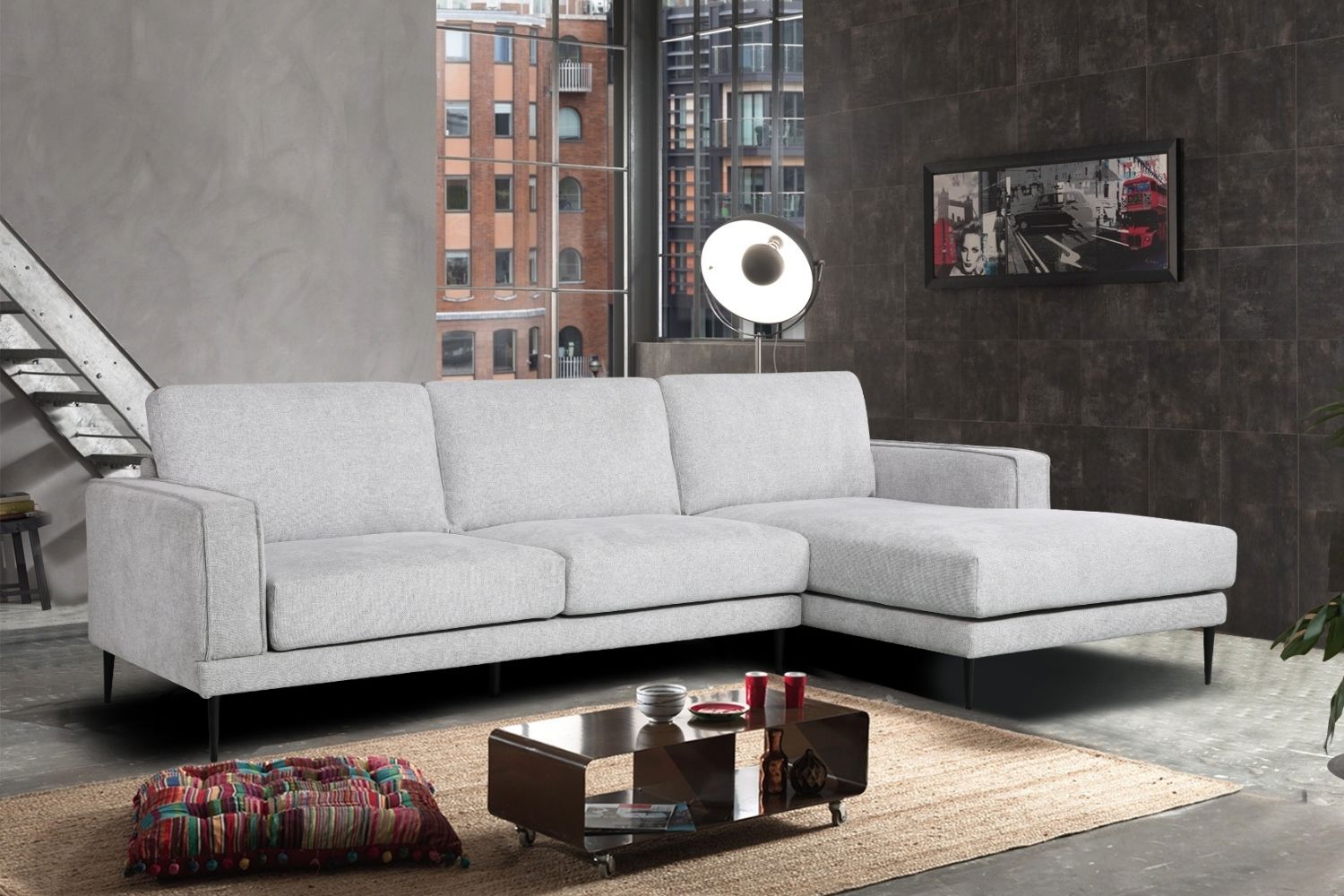 LONG ISLAND Sectional Fabric Sofa (Light Grey)