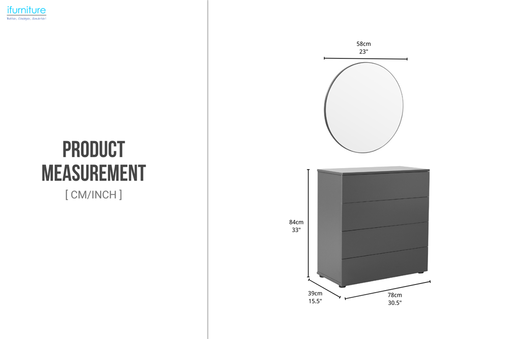 - Modern Design: The sleek matt grey finish and minimalist style make this 4-drawer chest a seamless addition to contemporary décor, while the round mirror adds elegance.