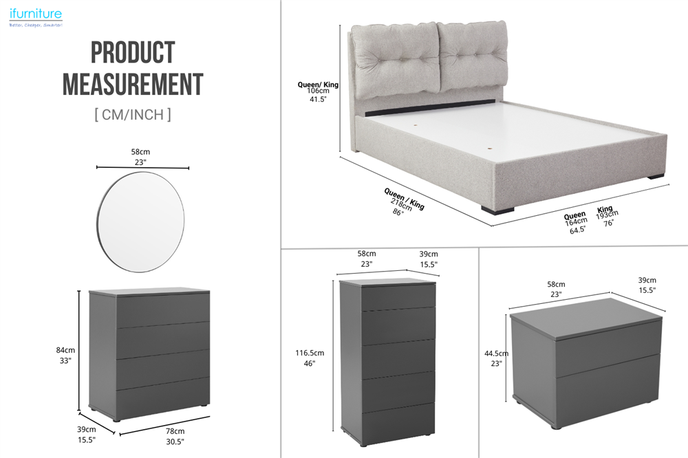 Dresser: 78 (width), 39 (depth), 84 (height)