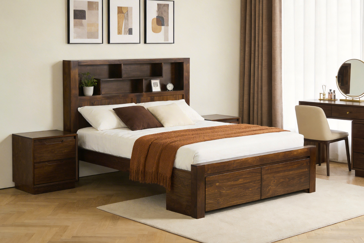 MALAGA Storage Bed Frame In Queen Size (Walnut)