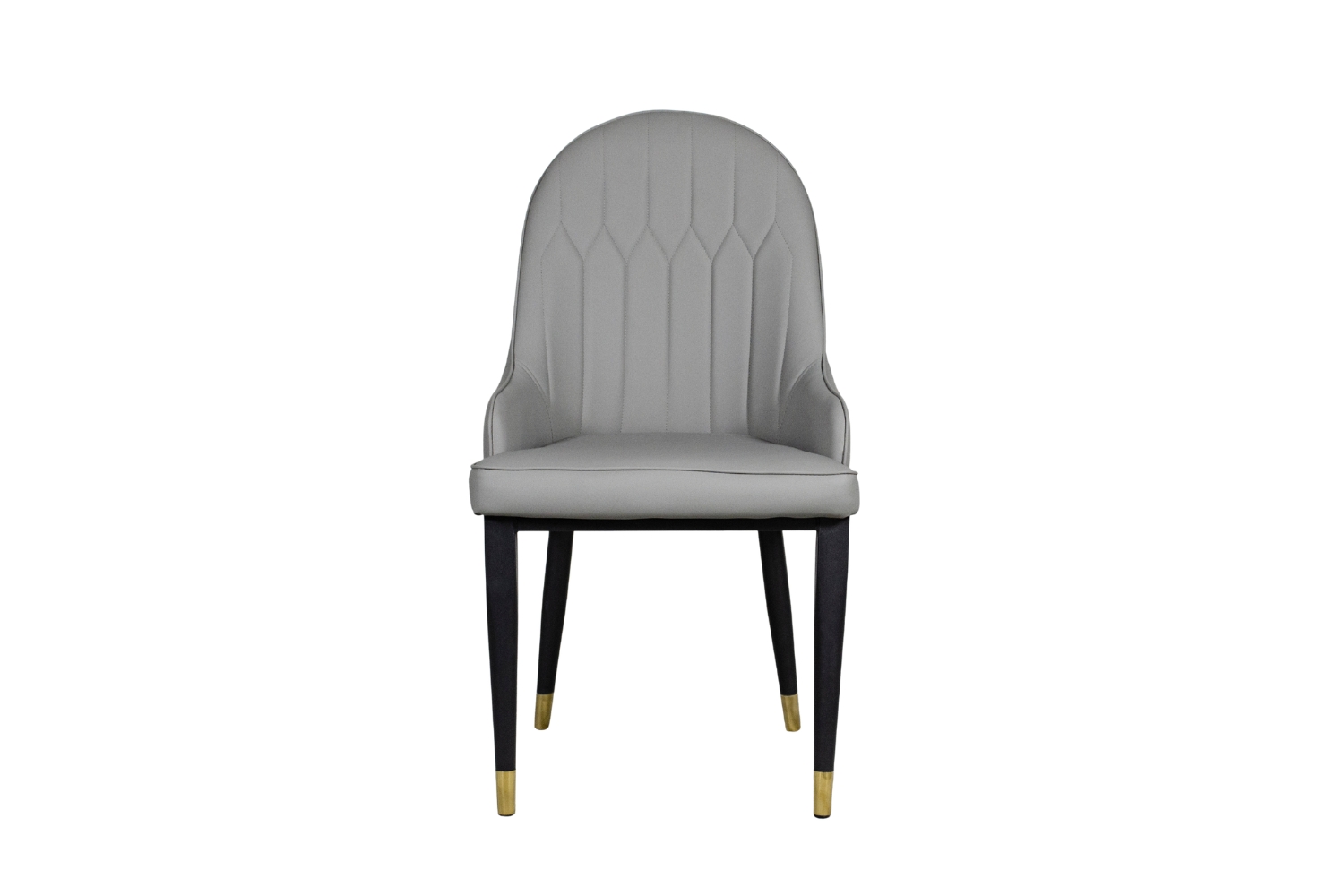 The MILDA Dining Chair pairs a softly upholstered, foam-cushioned seat with a supportive curved back and sleek black legs finished with golden metal tips—bringing modern elegance and everyday comfort to your dining space.