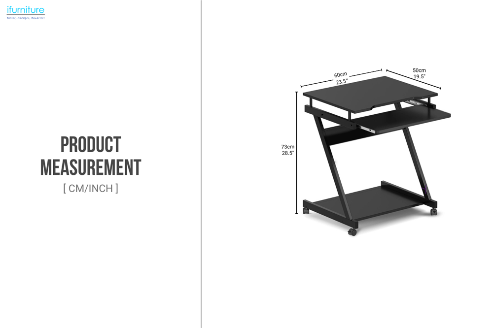 MOBELLA Z-Type Laptop Desk with Wheels (Black)