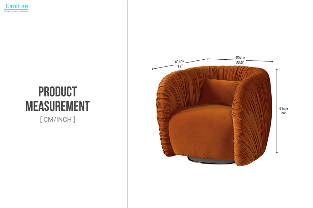 This armchair is built with a sturdy engineered wood and solid wood frame, ensuring long-lasting stability. The seat cushions, filled with high-density foam and soft goose feathers, offer both comfort and support. Handcrafted with natural wrinkles, each chair is a unique piece. It also features a smooth 360° swivel for added convenience. With its timeless design, it effortlessly complements any living space.