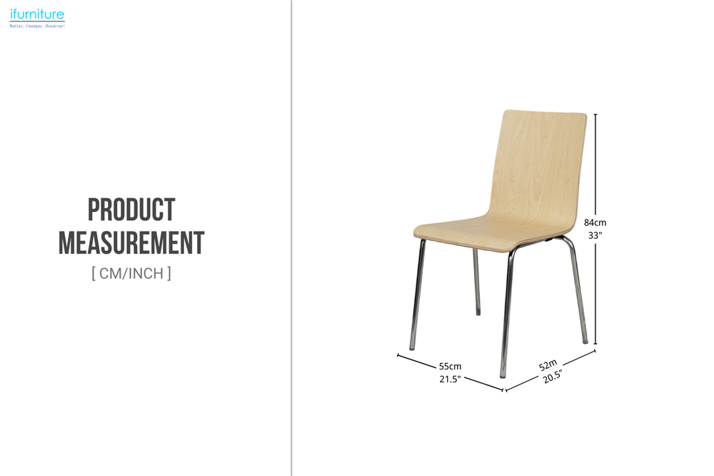 Designed with a smoothly contoured bent wood seat, this chair offers natural support and a refined profile. The heavy-duty chrome metal legs provide lasting strength and stability, while its stackable, commercial-grade design makes it ideal for both residential and professional dining spaces.