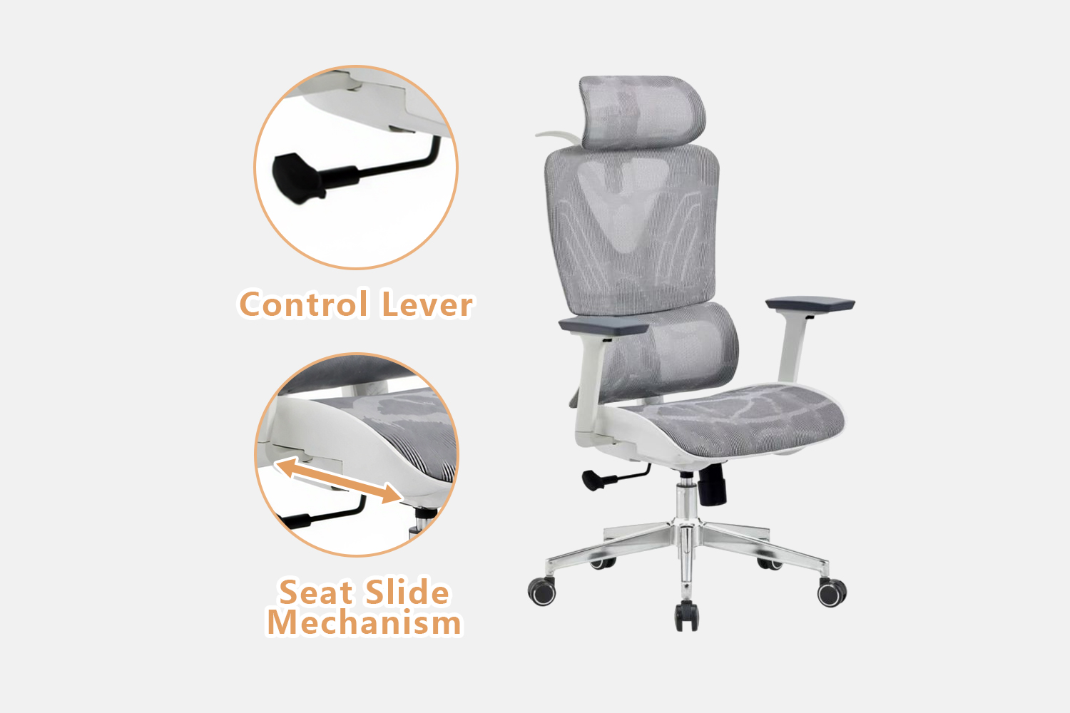 NOEMI Premium High Back Office Chair with Seat Slider (Grey)
