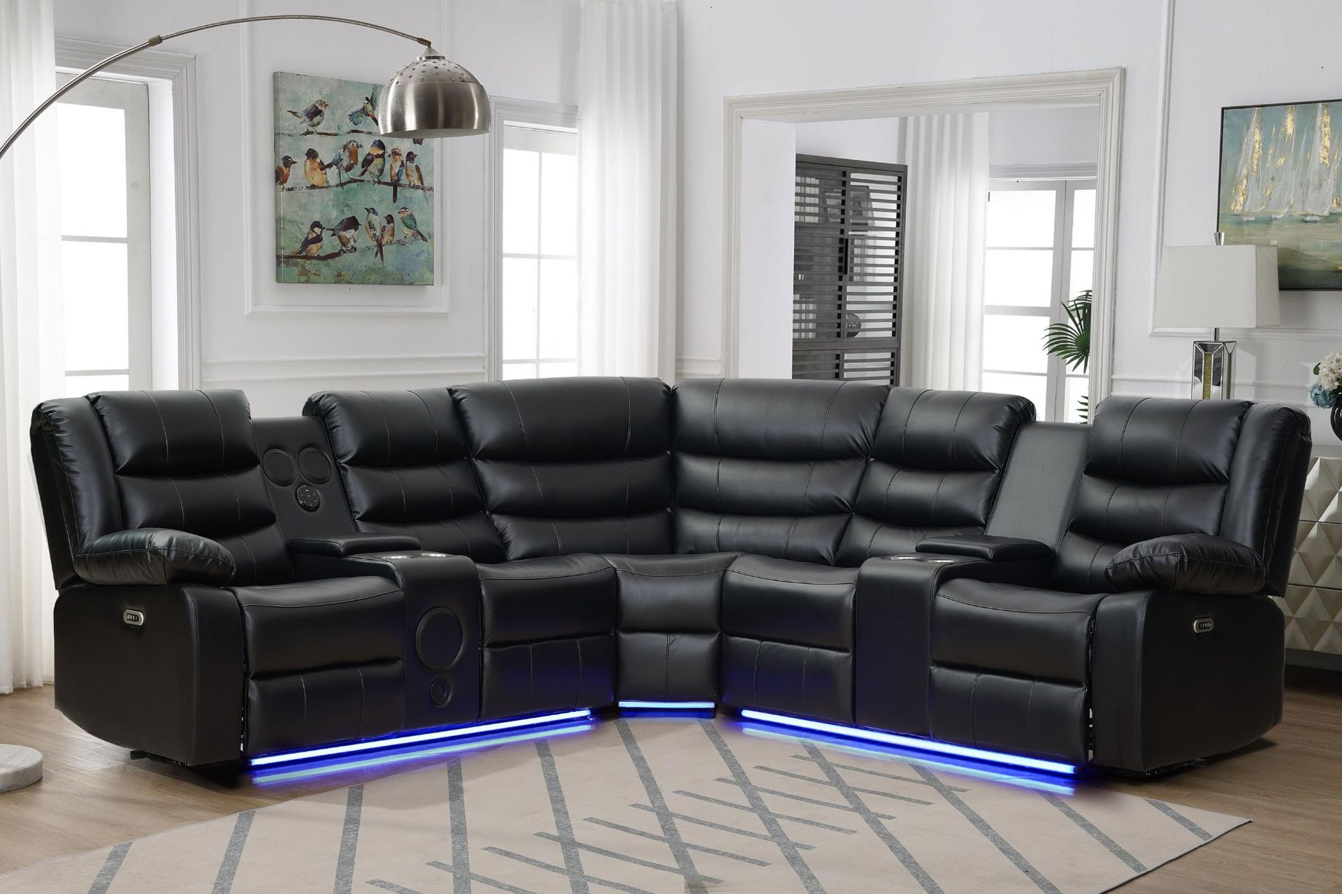 ORLANDO Air Leather Sectional Power Reclining Sofa with Console & Cup Holders & Storage & Bluetooth Speaker & USB Charging Port & LED Lighting