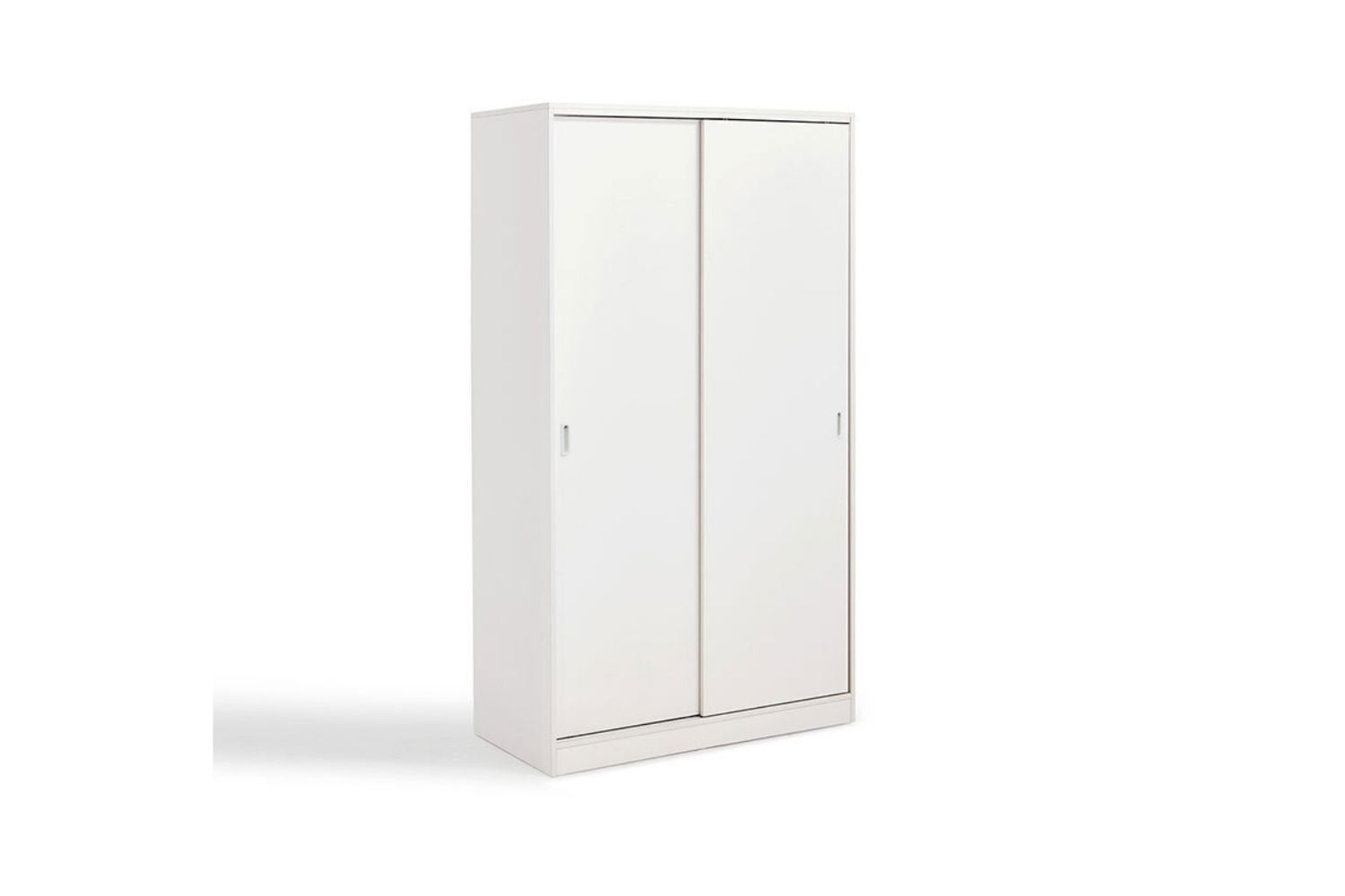 The PROMO Sliding Wardrobe in pristine white offers both functionality and style with its engineered wood construction and sliding doors. This wardrobe maximizes space efficiency with its sliding mechanism, making it a practical choice for various room sizes. Crafted from durable engineered wood, it presents a sleek and modern aesthetic while providing ample storage space for clothing, accessories, and more. The sliding doors ensure smooth operation, enhancing the wardrobe's functionality while adding a touch of contemporary elegance to any bedroom.