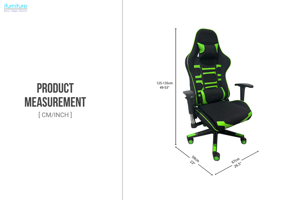 This gaming chair offers comfort and functionality with height-adjustability, 360° swivel, and a reclining function. The durable fabric, 2D adjustable armrests, and ergonomic headrest ensure comfort, while the racing-style five-wheel base provides stability and smooth movement. With a Class 3 gas lift, it’s built for long-lasting performance, perfect for both gaming and work.