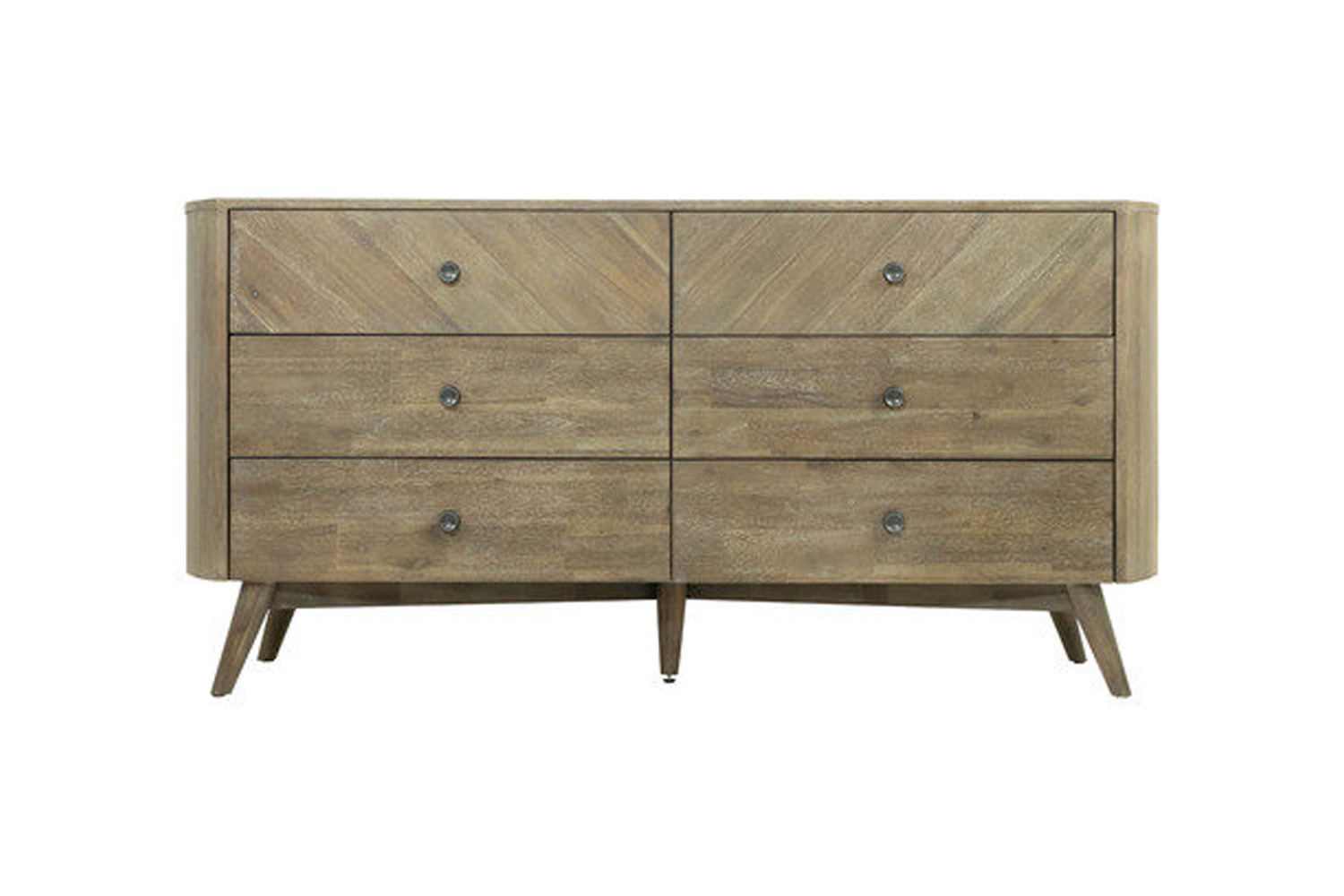 The Rialto Retro inspired dresser is crafted from solid acacia wood, provides a robust and enduring storage solution that's designed to stand long. With its generous storage capacity Rialto 6-Drawer dresser provides ample space to keep your clothing, accessories, and personal items tidy and within easy reach.