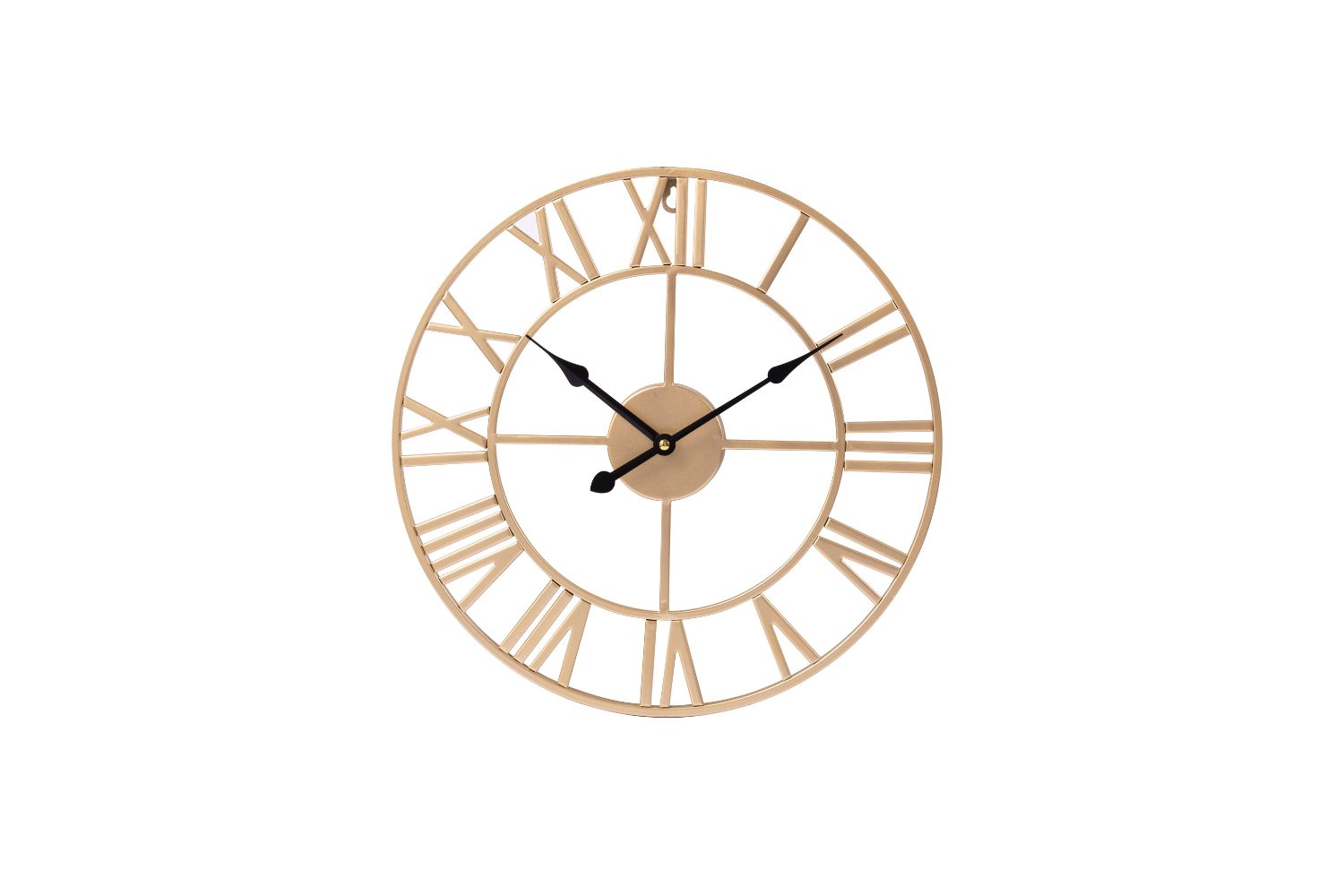 The Roma 60 Metal Wall Clock in Golden is a stunning timepiece that combines elegance with durability. This round clock is meticulously crafted from high-quality metal materials, ensuring its longevity and resilience. Its exquisite design exudes timeless charm, making it a perfect addition to any home or office decor. With its sizable 23.6-inch diameter, this clock makes a bold statement on any wall, while its golden color adds a touch of sophistication. The Roma Wall Clock not only keeps time accurately but also enhances the aesthetics of your space, showcasing impeccable design and build quality.
