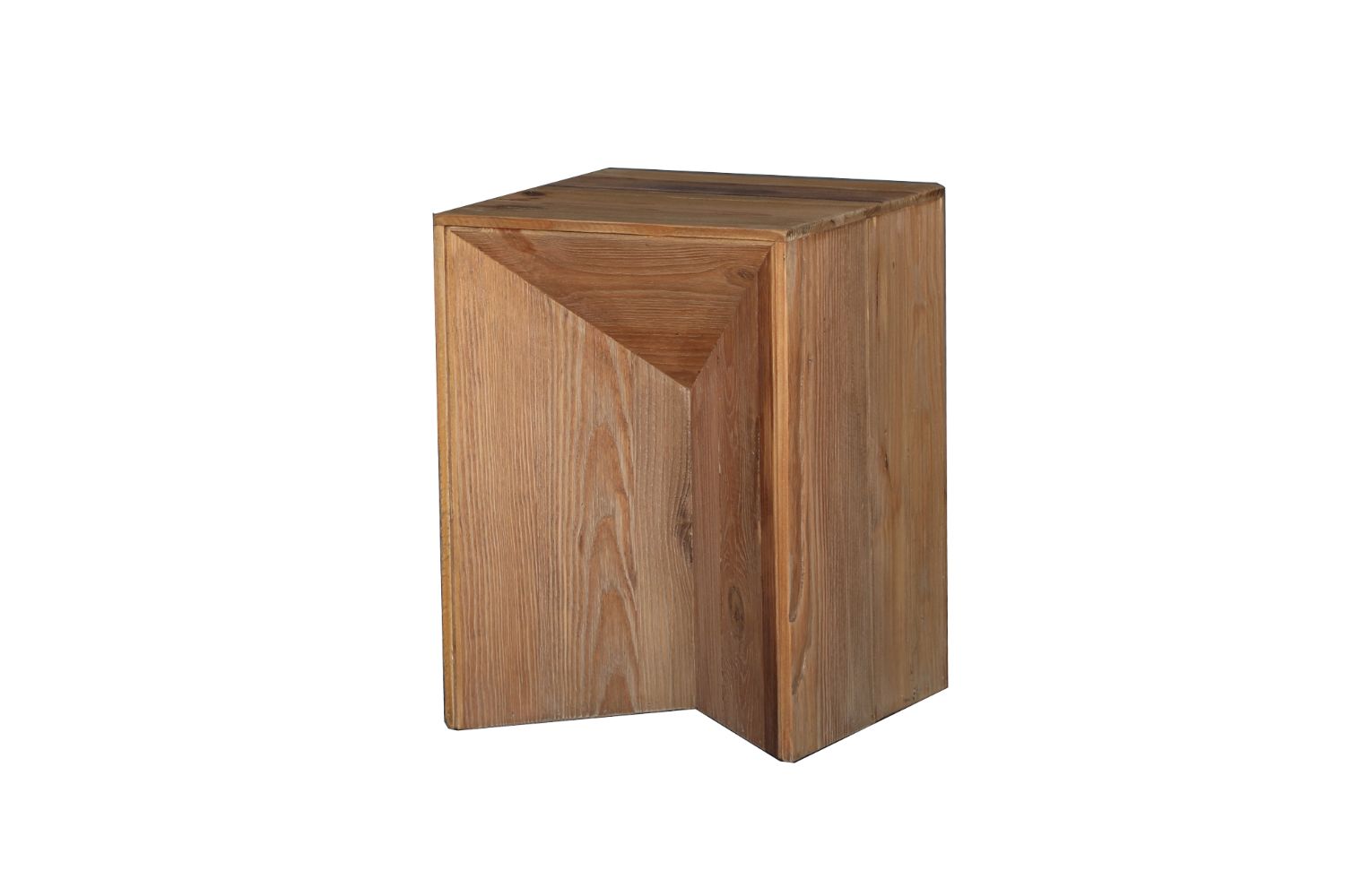 Modern Geometric Design: The ROWAN Stool features a distinctive angular cutout, adding a sculptural element to its minimalist square form. Its clean lines and architectural aesthetic make it a stylish addition to both modern and rustic spaces.