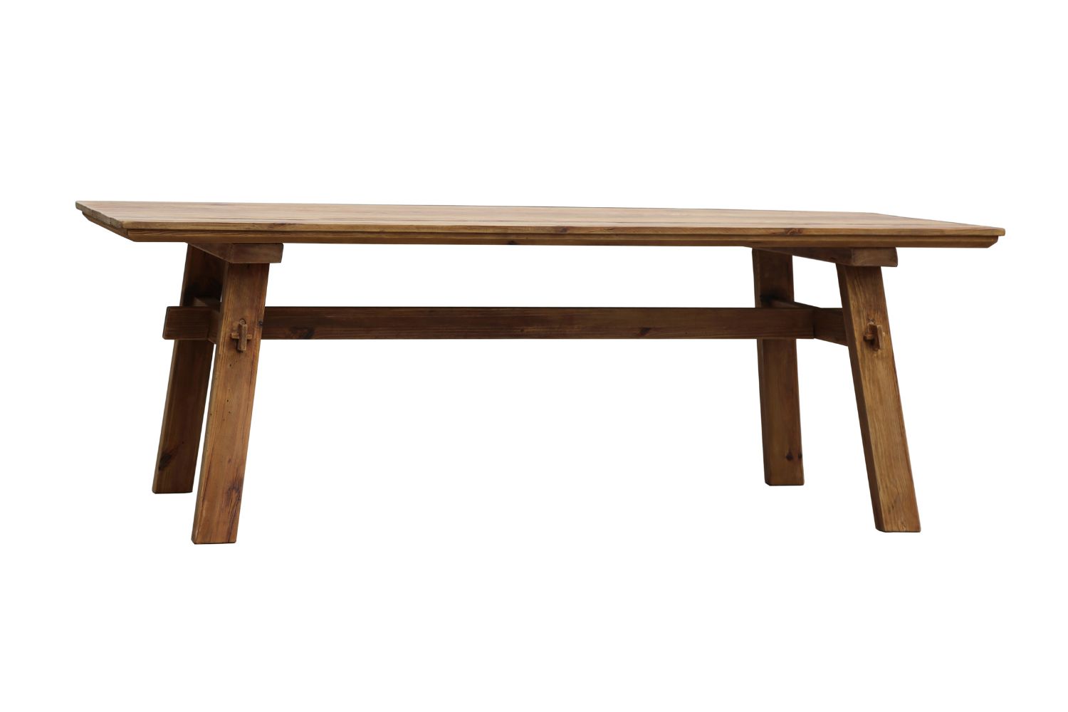 Meet the SHEETA Solid Reclaimed Pine Wood Dining Table (220cmx100cm) – a real showstopper that's all about sustainability and craftsmanship. Crafted from aged structures, this table isn't just solid; it's practically indestructible. Thanks to its time-tested construction, it laughs in the face of warping and splitting, promising you years of reliable use. But it's not just about toughness – this table has a personality of its own. The reclaimed pine wood undergoes a natural aging process, giving each piece a unique texture and color. It's like a little piece of history right in your dining room. So, if you want a table that's not just furniture but a conversation starter, the SHEETA table is your go-to. It's where rustic charm meets timeless beauty – perfect for creating a cozy vibe in any space!
