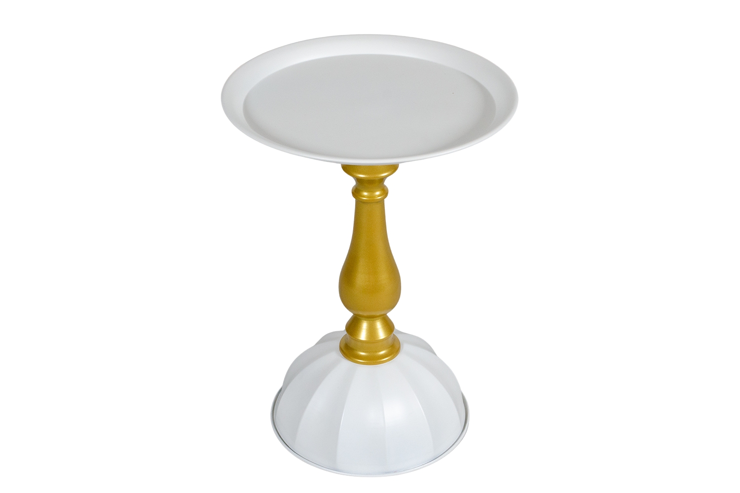 This metal side table combines durability with elegant design, featuring a tray-style round top that prevents items from slipping off. Its decorative pedestal base adds a refined touch, while the compact size makes it a versatile accent piece for living rooms, bedrooms, or lounges.