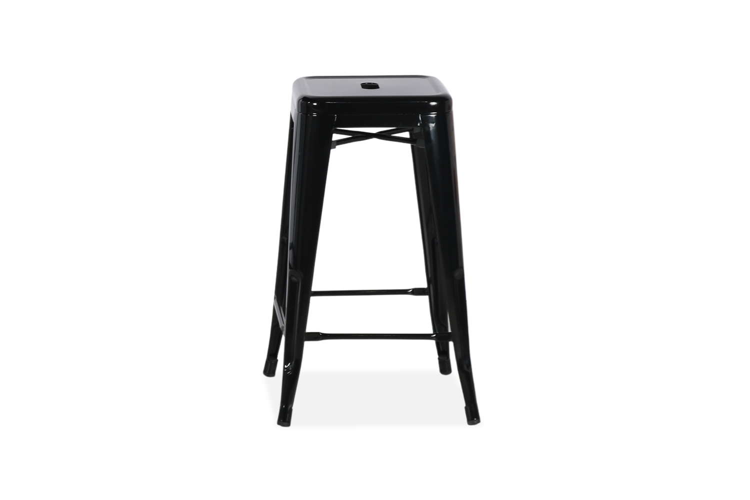 Made of sheet metal and powder coated. Stackable up to 8 chairs high