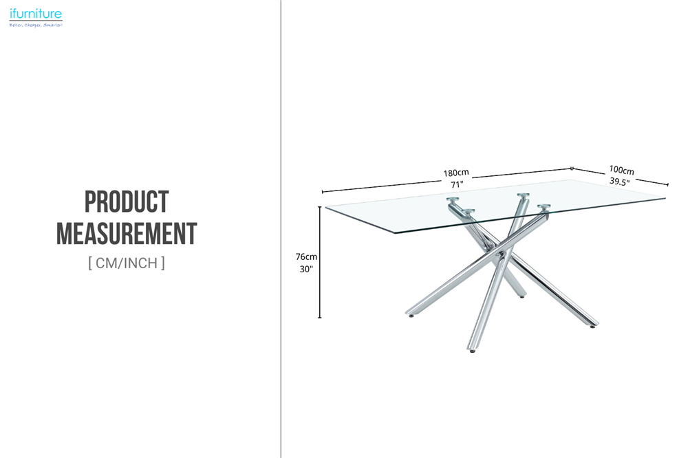 TOVIN 180 Tempered Glass Dining Table