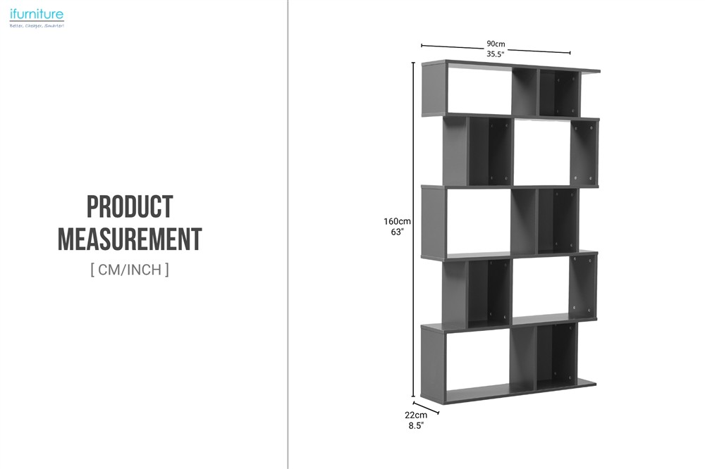 - 5-Tier Storage: Five open shelves provide ample space for books, decor, and other items, helping to keep your space organised and tidy.