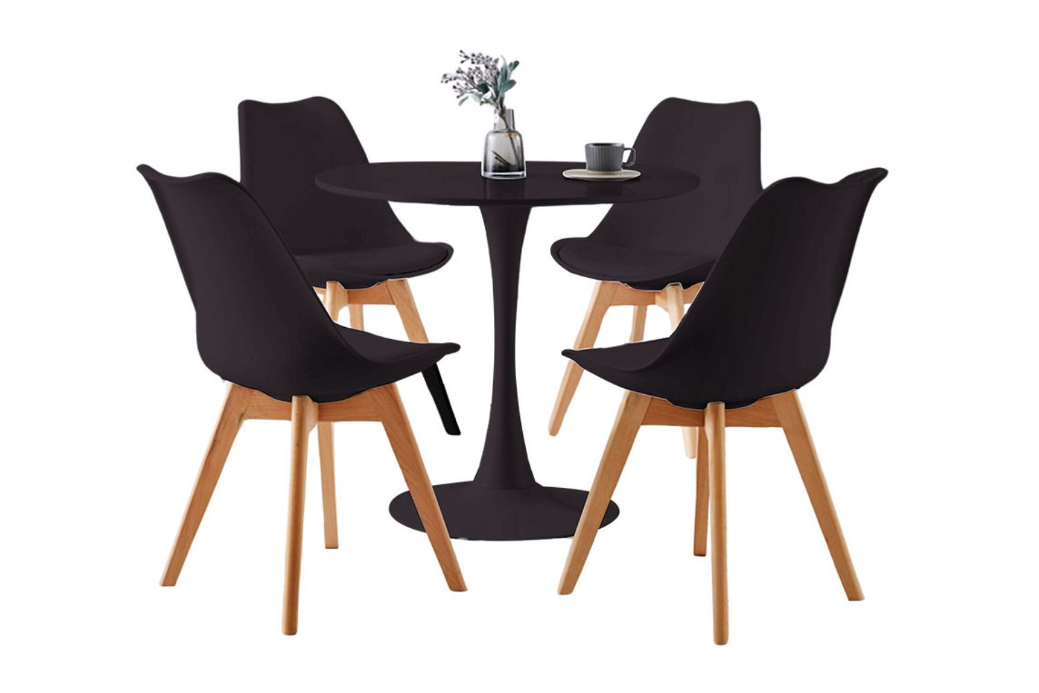- Modern chairs with PP shells, PU cushions, solid beech legs, and metal elements