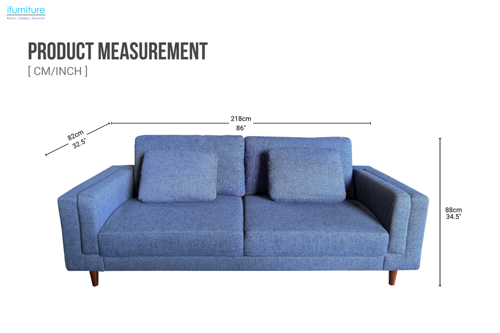 VALAND Linen 3-Seater Sofa (Blue)