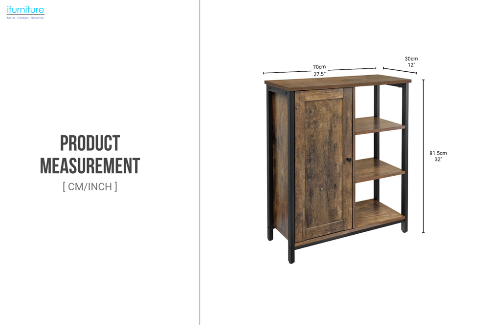 - Dual Storage: The left door cabinet conceals everyday clutter with a 3-tier interior; the right side features 3 open shelves for daily necessities, books, baskets, or décor.